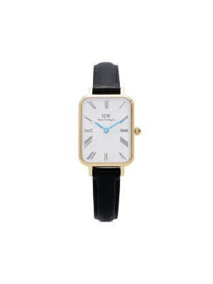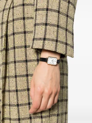Daniel Wellington Quadro Sheffield 20mm Imported Highlights 20mm stainless steel quartz movement gold-tone case square face white index dial baton hands Roman numeral dial screw-down crown black calfskin leather strap adjustable fit gold-tone buckle fastening water resistance up to 30m/3 ATM This item comes with a standard two-year warranty from the brand. Composition stainless steel, Calf Leather Wearing The model is 5 ft 11 in wearing size OS Product IDs FARFETCH ID: 22896836 Brand style ID: DW00100692