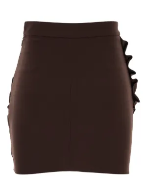 Elisabetta Franchi ruffled miniskirt Imported Highlights brown mini length concealed zip fastening Composition Polyester 98%, Elastane 2% Washing instructions Read Manufacturer Guidelines Product IDs FARFETCH ID: 32047000 Brand style ID: GO12957E2