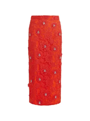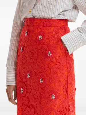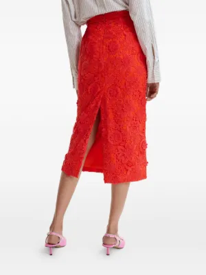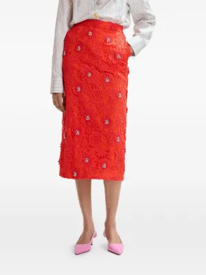 New Season Essentiel Antwerp floral rhinestone midi skirt Imported Highlights orange floral lace rhinestone embellishments side pockets back slit zip fastening Composition Fabric 100% Washing instructions Hand Wash Product IDs FARFETCH ID: 33512357 Brand style ID: JOURGET