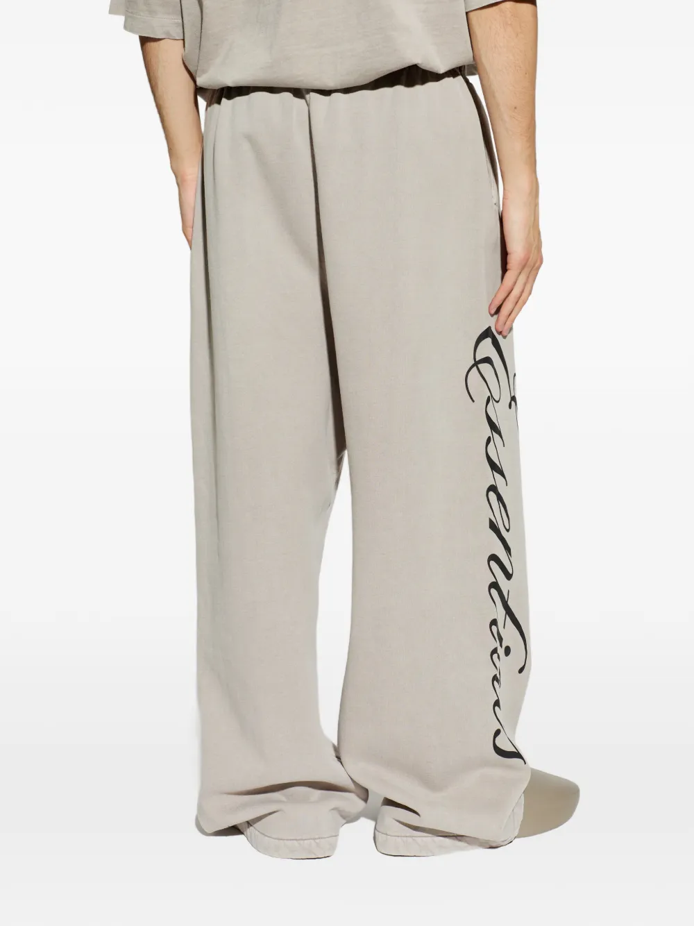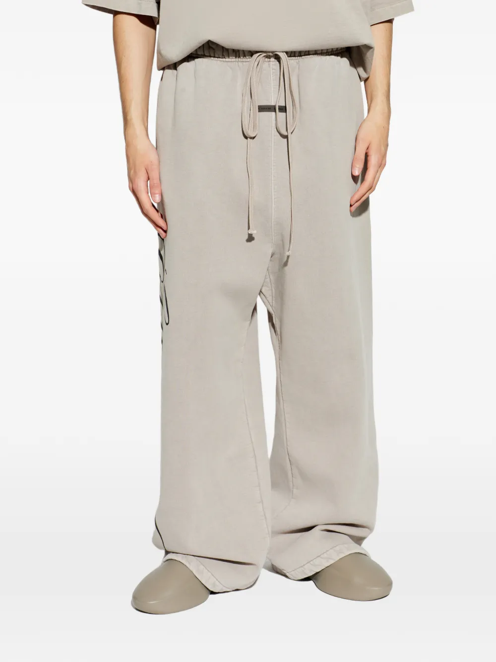 New Season FEAR OF GOD ESSENTIALS logo-print track pants Imported Highlights smoke grey logo print drawstring fastening wide leg elasticated waistband straight hem Composition Outer: Cotton 100% Washing instructions Read Manufacturer Guidelines Product IDs FARFETCH ID: 33191879 Brand style ID: 130HO258381F