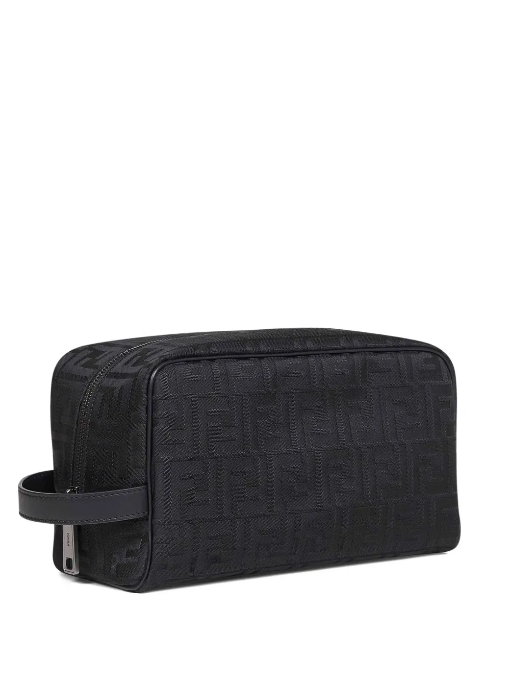 New Season FENDI padded handle wash bag Made in Italy Highlights black ff nylon design ruthenium-toned metal hardware top zip fastening smooth leather handle embossed texture Composition Outer: Polyester 100%, Calf Leather 100% Lining: Polyester 77%, Resin 23% Product IDs FARFETCH ID: 33283283 Brand style ID: 7N0141AVC6