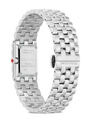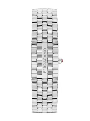 Ferragamo Secret 18.5 x 33mm Imported Highlights red dial 18.5 x 30mm rectangle face quartz movement textured bezel steel bracelet water resistance up to 30m/3 ATM This item comes with a standard two-year warranty from the brand. Composition stainless steel, glass Product IDs FARFETCH ID: 30856548 Brand style ID: SFS900224