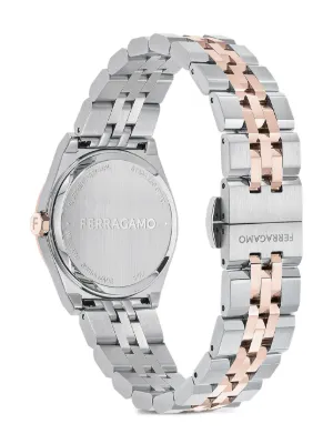 Ferragamo Vega 28mm Imported Highlights brown 28mm stainless steel round face index dial baton hands Gancini plaque quartz movement quartz movement screw-down crown adjustable link bracelet folding clasp This item comes with a standard one-year warranty from the boutique. Composition stainless steel, Rose Gold-Plated Metal Product IDs FARFETCH ID: 26603207 Brand style ID: SFKJ00624