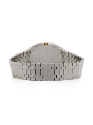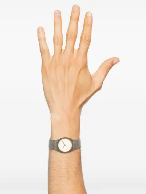 Gucci 25H 38mm This Gucci watch draws inspiration from modern architecture with its sleek, contemporary silhouette whilst the 25H represents creative director, Alessandro Michele's symbolic talisman. Imported Highlights 18kt gold plated steel/stainless steel round face signature Interlocking G logo stainless steel link bracelet water resistance up to 30m/3 ATM sapphire-crystal glass quartz movement anti-reflective coating brass dial Composition Sapphire Glass, 18kt Gold Plated Steel, stainless steel Wearing The model is 5 ft 10 in wearing size OS Product IDs FARFETCH ID: 17443167 Brand style ID: 673123ICUA0