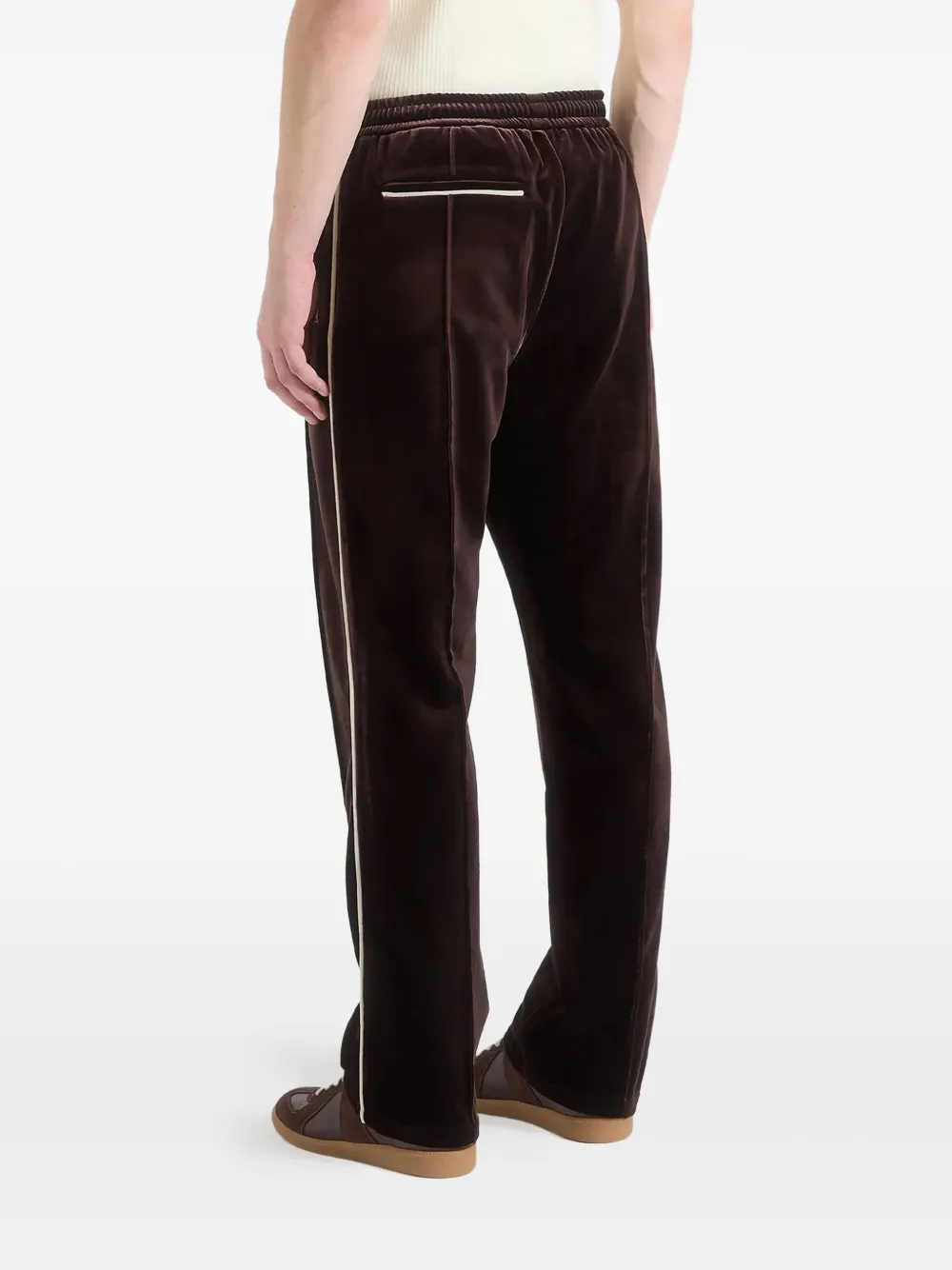 Manière De Voir Eiffel velour track pants Imported Highlights brown velour fabric contrast piping elasticated waistband welt pockets debossed leather patch Composition Polyester 100% Washing instructions Read Manufacturer Guidelines Product IDs FARFETCH ID: 32606896 Brand style ID: MAN3360