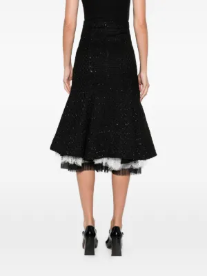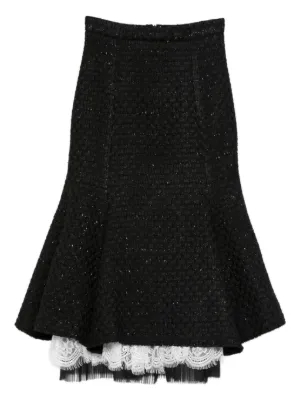 New Season MIAU by Clara Rotescu Zion lace-trim midi skirt Imported Highlights black lace trim textured effect rear zip fastening Composition Cotton 40%, Wool 40%, Polyamide 20% Washing instructions Machine Wash Wearing The model is 5 ft 10 in. Product IDs FARFETCH ID: 32732477 Brand style ID: ZION