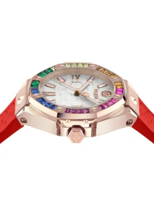 Philipp Plein Lady Royal 39mm Imported Highlights 39mm red stainless steel glass crystal embellishment central hours, minutes and seconds folding clasp round face logo-engraved arm baton hands stainless steel link bracelet This piece comes complete with a protective dust bag. Composition stainless steel, Crystal, Silicone, glass Product IDs FARFETCH ID: 24630191 Brand style ID: PWBDA0524