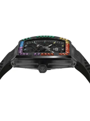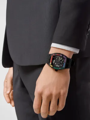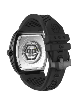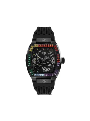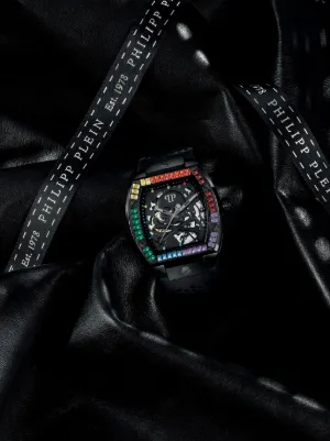 44mm stainless steel case automatic movement square face rhinestone dial skull appliqué rhinestone-encrusted bezel silicone bracelet pin-buckle fastening This item comes with a standard two-year warranty from the brand.