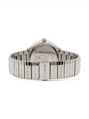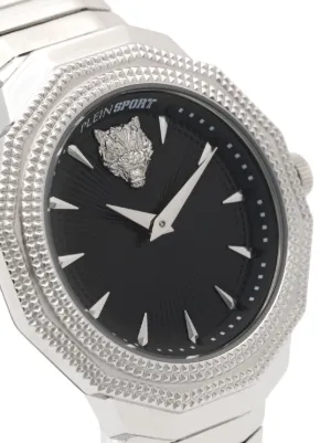 Plein Sport Dinasty 37mm Imported Highlights stainless steel case quartz movement silver-tone guilloché dial sword hands signature Tiger Head motif octagonal face layered fluted bezel screw-down crown stainless steel link bracelet logo-engraved folding clasp water resistance up to 50m/5 ATM This item comes with a standard one-year warranty from the boutique. Composition stainless steel Wearing The model is 5 ft 11 in wearing size OS Product IDs FARFETCH ID: 22332806 Brand style ID: PSOBA0523