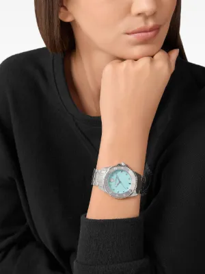 Plein Sport Glam 40mm Imported Highlights 40mm blue stainless steel round face guilloché dial index hands quartz movement logo-engraved bezel screw-down crown adjustable link bracelet folding clasp This item comes with a standard one-year warranty from the boutique. Composition stainless steel Product IDs FARFETCH ID: 26603149 Brand style ID: PSKBA1525