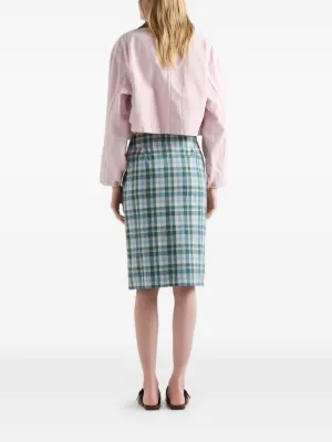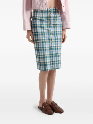 A delicate plaid print with retro charm enhances this skirt, becoming an expression of modern, unconventional femininity. The pencil skirt made of cotton is defined by its delicate button closure on the front.