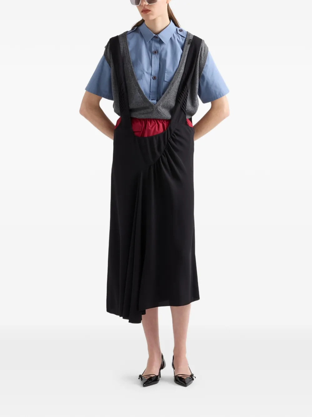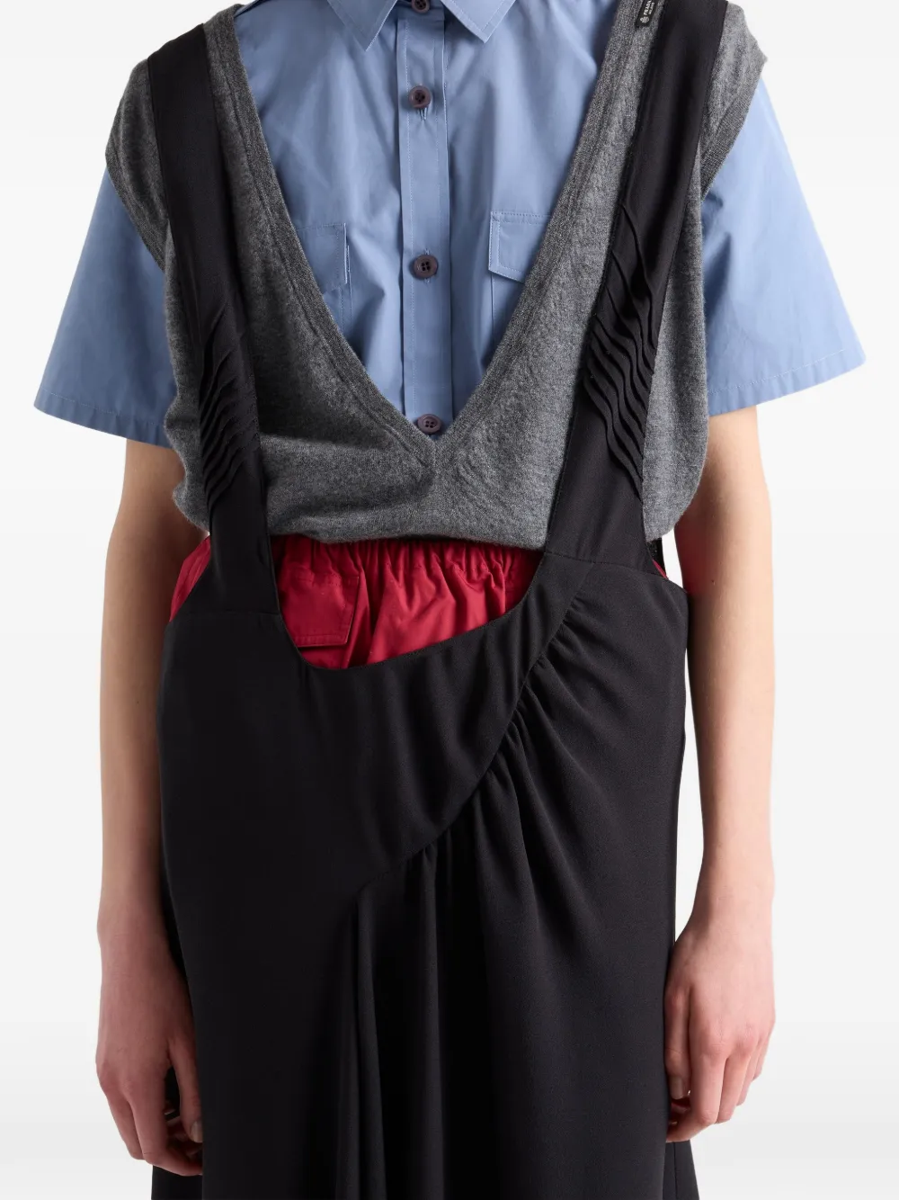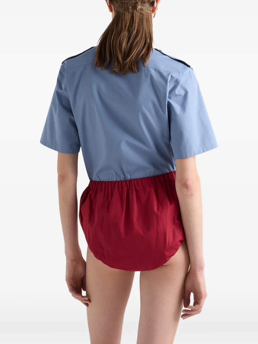 These shorts strike a new balance between contemporary lines and the pragmatic simplicity of workwear. The boy shorts style made of poplin features elasticized details that create soft volume to lightly envelop the body.