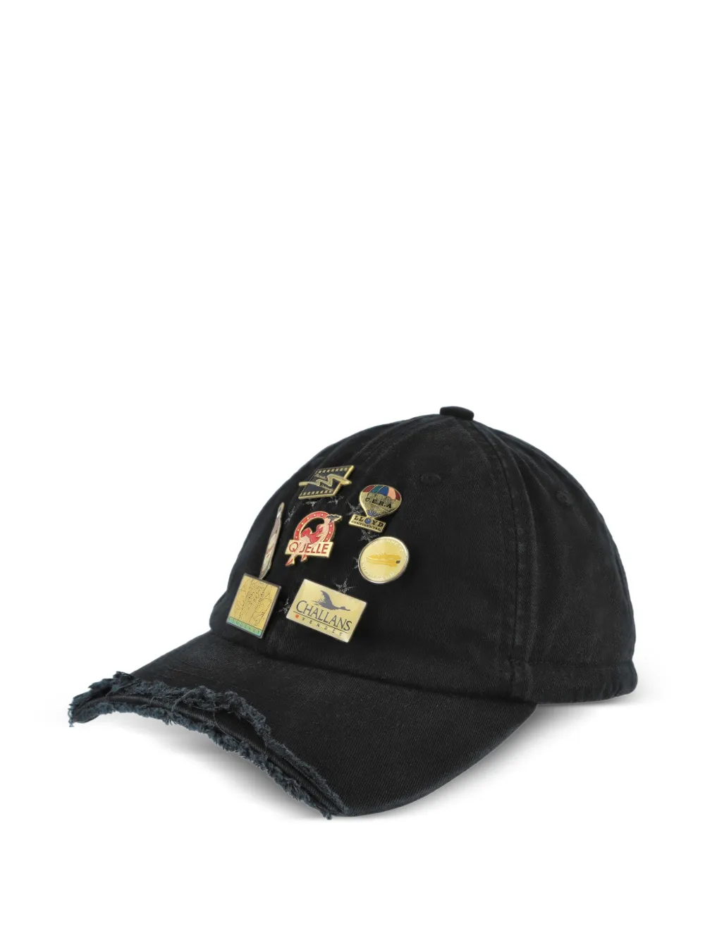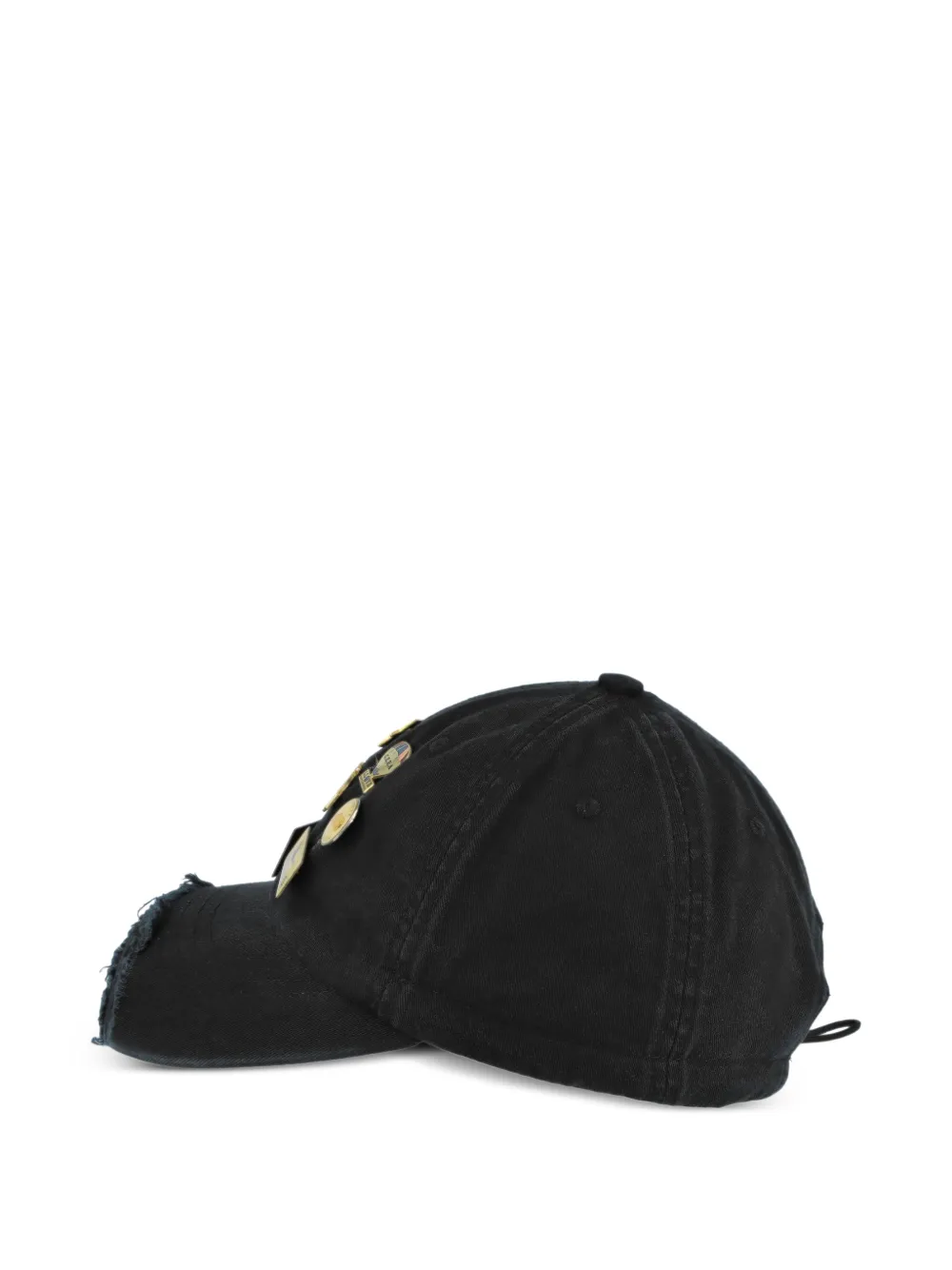 PROTOTYPES pin-badge baseball cap Imported Highlights black pin badges distressed detailing drawstrings fastening Composition Cotton 100% Washing instructions Dry Clean Only Product IDs FARFETCH ID: 33136221 Brand style ID: PT08ACC07USBK