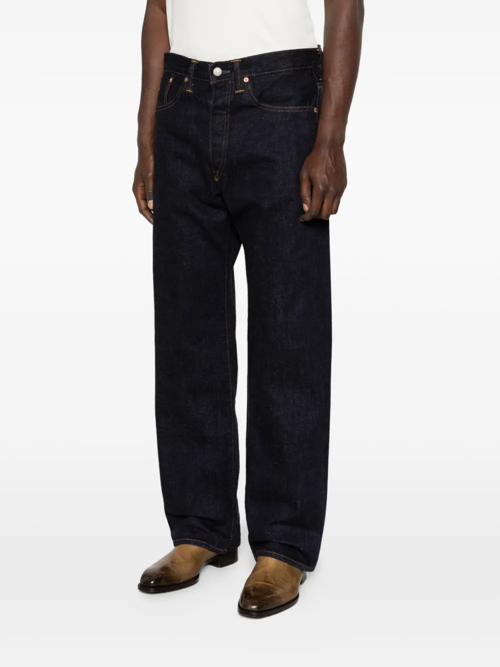 Selvedge logo button trousers