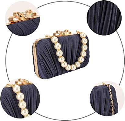 Satin Clutch Evening Bag Diamond Pleated Purse Pearl Tote Bridal Wedding Porm