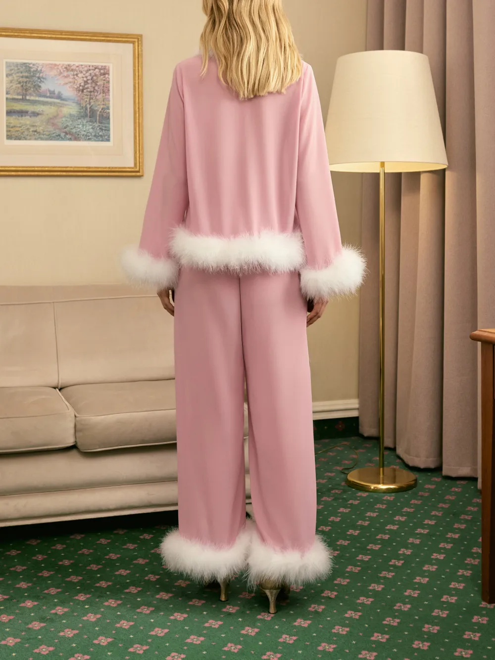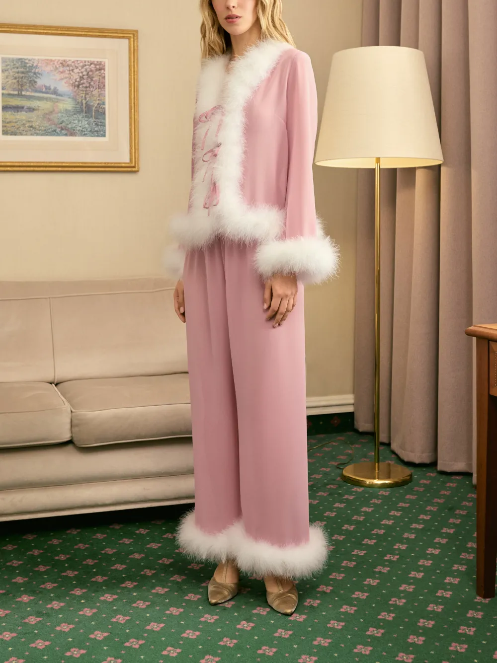 New Season Sleeper Afrodita faux fur-trim pajama set Imported Highlights pink faux fur trim ribbon detail long sleeves Composition Polyester 100%, Feather 100% Washing instructions Dry Clean Only Product IDs FARFETCH ID: 33879373 Brand style ID: AFSP02P006F