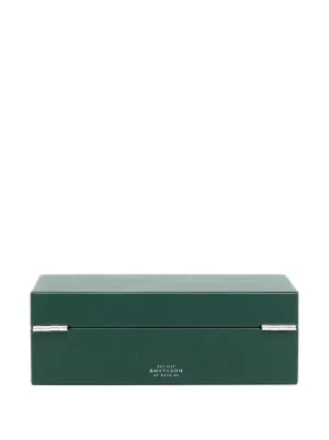 Blending meticulous craftsmanship with secure convenience, this Smythson watch box is crafted from signature Panama leather. Safely locked with a key, it comes with a suede lining for premium timepiece and cufflink storage.