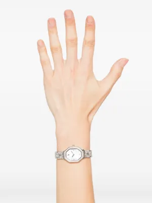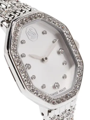 Swarovski Dextera 23mm x 18mm Imported Highlights white dial octagon case shape 23mm x 18mm case size silver-tone hardware crystal embellished numerals pavé-set crystal embellished bezel quartz movement This item comes with a standard one-year warranty from the boutique. Composition stainless steel, Swarovski Crystal Wearing The model is 5 ft 9 in wearing size OS Product IDs FARFETCH ID: 30856855 Brand style ID: 5698690