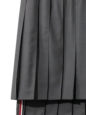 Final Sale Thom Browne pleated midi skirt Made in Italy Highlights medium grey pleated signature striped trim zip fastening Composition Outer: Wool 100% Lining: Cupro 100% Washing instructions Read Manufacturer Guidelines Product IDs FARFETCH ID: 33512618 Brand style ID: FGC400V02872