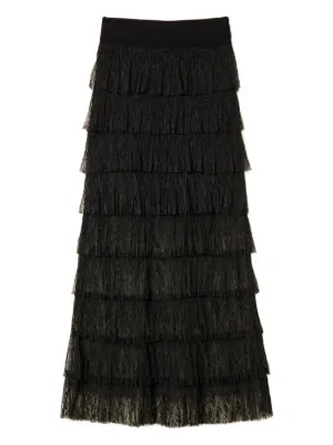 New Season TWINSET lace maxi skirt Imported Highlights black lace detail tiered design knitted construction Composition Outer: Viscose 72%, Polyester 28% Washing instructions Dry Clean Only Product IDs FARFETCH ID: 32866504 Brand style ID: 261TP3164