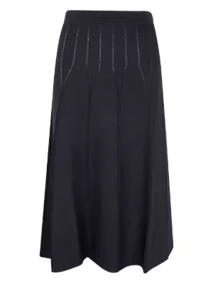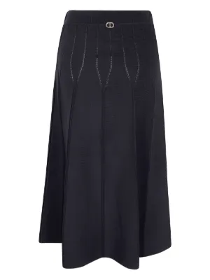 TWINSET ribbed knit midi skirt Imported Highlights black ribbed knit a-line shape metallic logo detail Composition Fabric 100% Washing instructions Read Manufacturer Guidelines Product IDs FARFETCH ID: 31145109 Brand style ID: 252TP3641