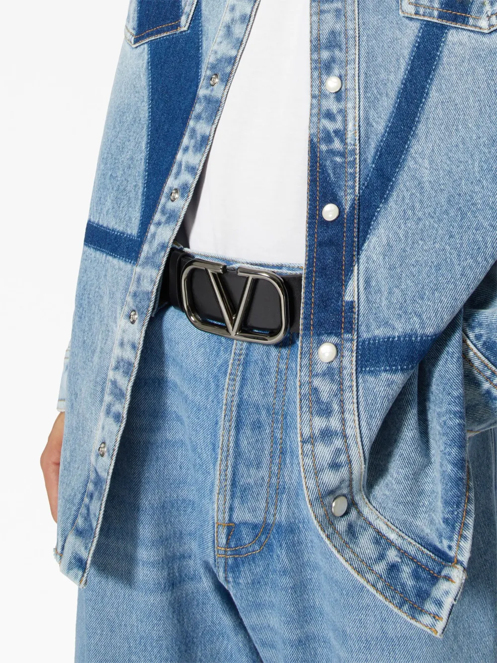 Valentino Garavani's VLogo Signature was first used in 1968 and is an instantly recognisable motif of the brand. In gunmetal-tone hardware at the front of this belt, the accessory has a refined and timeless feel.