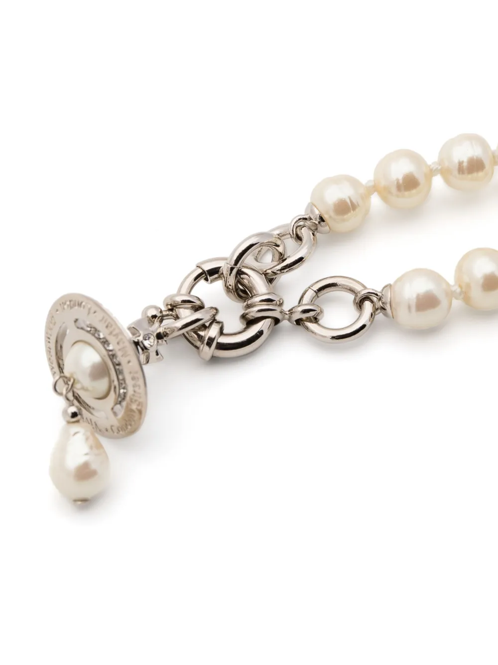 New Season Vivienne Westwood Aleksa pearl necklace Imported Highlights white signature Orb plaque detail Composition Pearl Wearing The model is 5 ft 9 in wearing size OS Product IDs FARFETCH ID: 25241618 Brand style ID: 6301011102P226VA