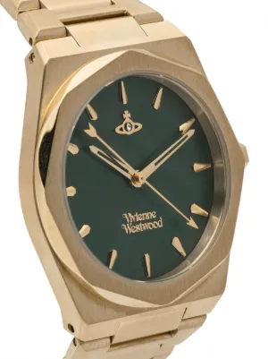 Vivienne Westwood Limehouse 35mm Imported Highlights 35mm stainless steel quartz movement forest-green dial geometric dial sword hands gold-tone logo plaque gold-tone logo lettering octagonal face stainless steel case screw-down crown gold-tone articulated links strap closure and push-lock fastening water resistance up to 50m/5 ATM This item comes with a standard one-year warranty from the boutique. Composition stainless steel Wearing The model is 5 ft 10 in wearing size OS Product IDs FARFETCH ID: 23465396 Brand style ID: VV244GRGD