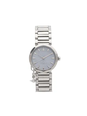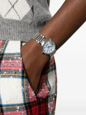 Vivienne Westwood Poplar 31mm Imported Highlights stainless steel quartz movement light blue baton dial baton hands index hands round face engraved bezel signature Orb plaque detail screw-down crown stainless steel link bracelet folding clasp This item comes with a standard one-year warranty from the boutique. Composition stainless steel Wearing The model is 5 ft 10 in wearing size OS Product IDs FARFETCH ID: 23465397 Brand style ID: VV246LBLSL