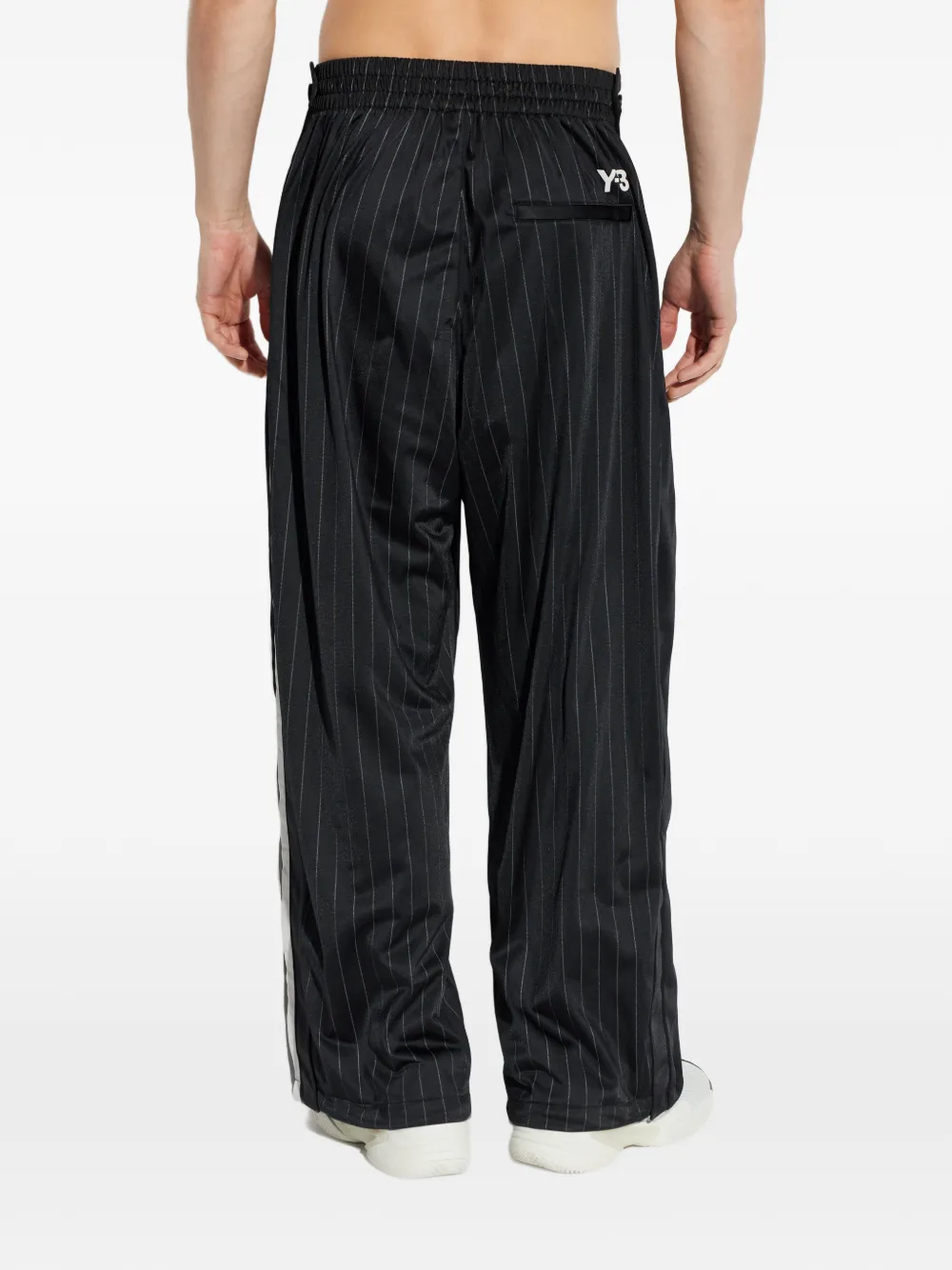 New Season Y-3 pinstripe drawstring track pants Imported Highlights black pinstripe pattern drawstring fastening elasticated waistband side seam pockets logo detail Composition Recycled Polyester 100% Washing instructions Read Manufacturer Guidelines Product IDs FARFETCH ID: 33643475 Brand style ID: KQ9716